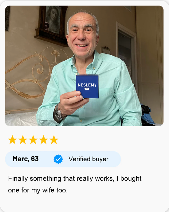 Created and endorsed by dentists and sleep specialists, NESLEMY™ is a proven solution to eliminate snoring and relieve sleep apnea. It allows your jaw to rest naturally, ensuring peaceful nights and a refreshed, happy morning—every day.