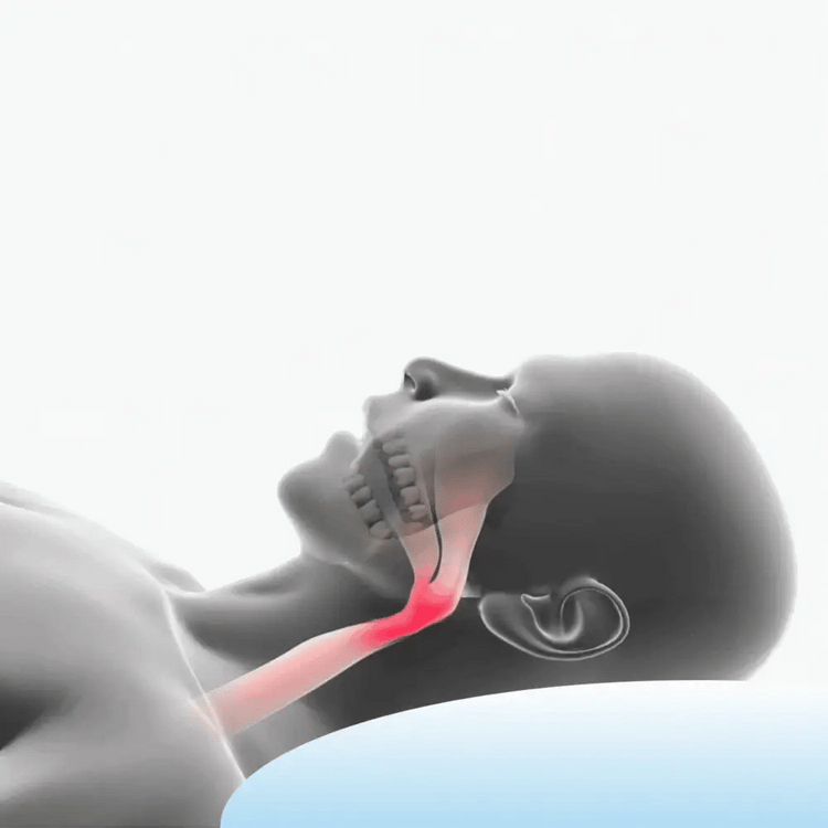 Snoring occurs when your jaw relaxes and shifts backward during sleep, causing your tongue and soft tissues to block the airway. As air tries to pass through this narrow passage, it causes vibrations—resulting in the sound we know as snoring.